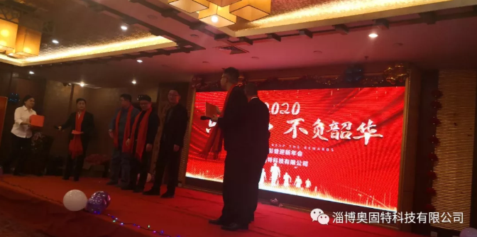 晚會開始首先由淄博奧固特科技有限公司執(zhí)行董事王總發(fā)表致辭,并宣布2020年度先進(jìn)表彰暨迎新年會正式開始,她代表公司感謝各位在過去一年為公司做出的貢獻(xiàn)和努力,并向全體員工致以親切的問候和新年的祝福。